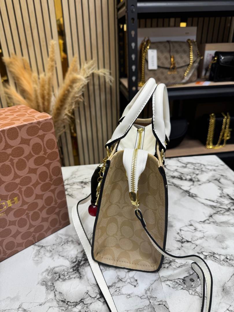 • Coac_h Maggie Medium Leather Tote Bag In Blocked Signature Canvas With Box And Dust Bag (White-7933)